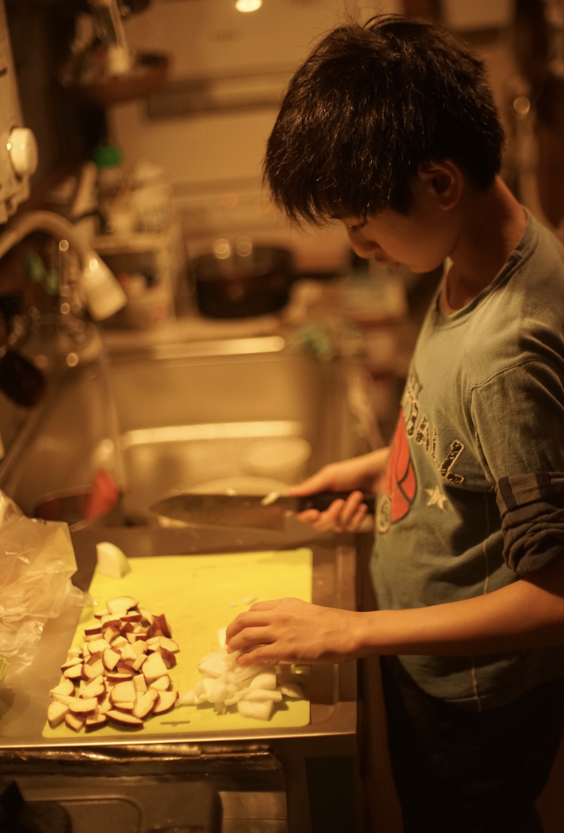 家族もいっぱい台所に立った。(↑長男)(↓次男)