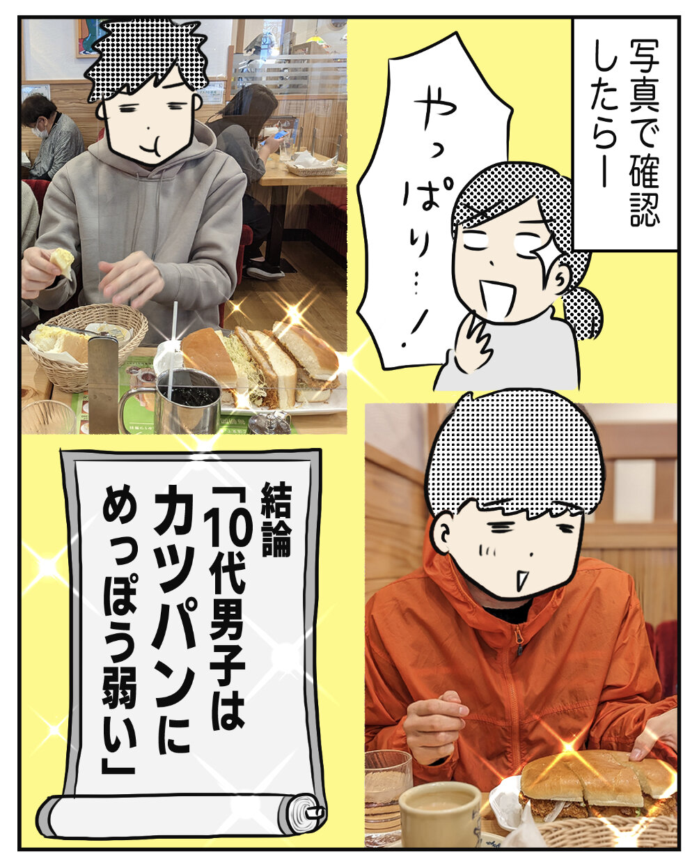 父と母の無料トーストも食べる。
