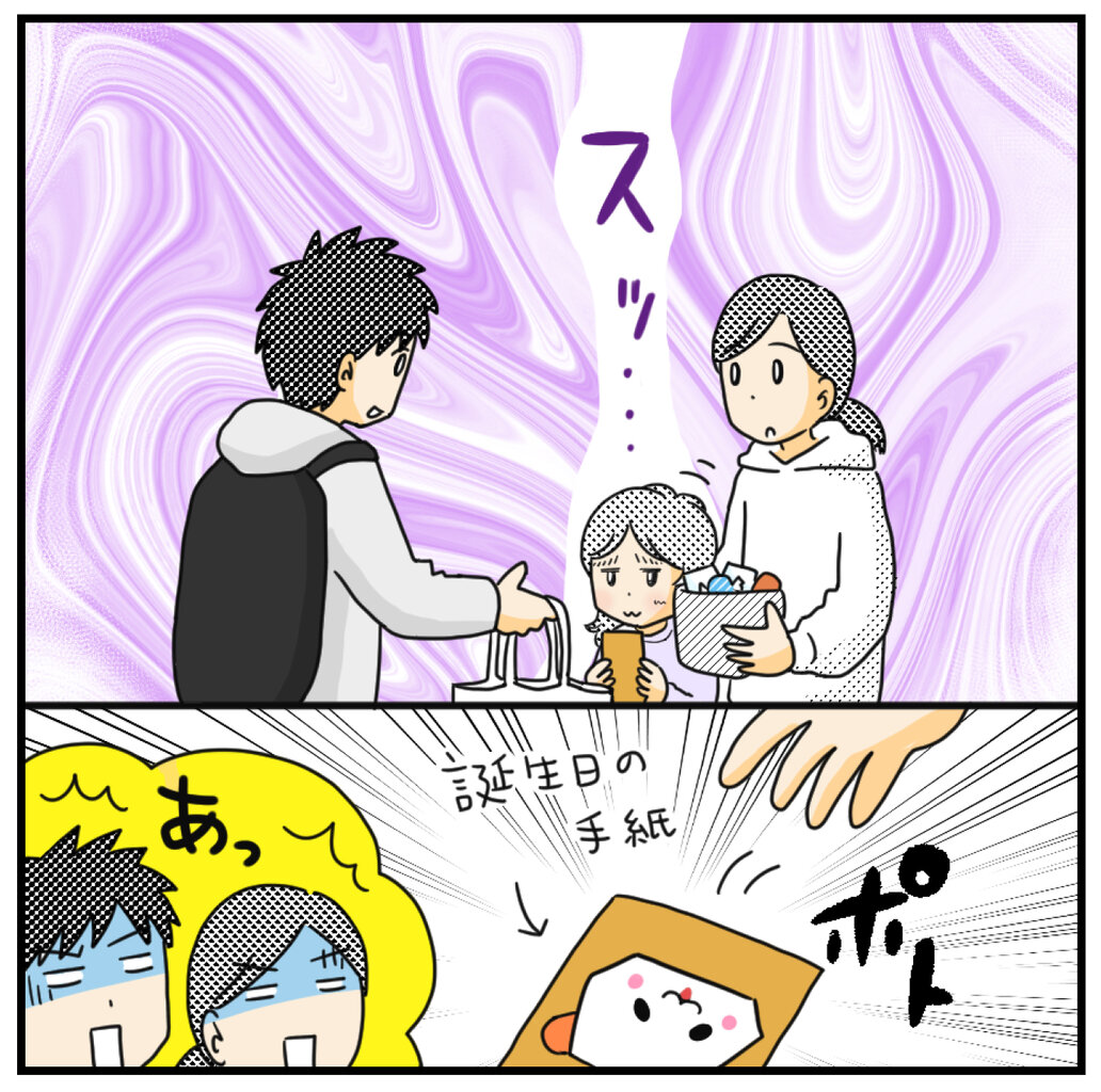 2025年01月10日 18:24 小2の妹からもらった誕生日プレゼントを… 長男ヒー編 「ダメじゃん☆」くらいのノリだった。◇次男バージョンもあるから次回描こうかな▼ここだけ日記(文章)平日毎日更新中 ▼アプリでブログ記事の更新通知を受けとる①こちらをクリック②ライブドアアプリをダウンロード、③「うちのヒフミヨ!」をフォローぜひぜひご登録お願いいたします♪書籍好評発売中です▼Amazonはこちらうちのヒフミヨ! 兄たちは妹びより (コミックエッセイ)MOTOKO祥伝社2019-08-31▼楽天はこちらうちのヒフミヨ! 兄たちは妹びより [ MOTOKO ] 「長女ヨッちゃん」カテゴリの最新記事 < 前の記事次の記事 > コメント このブログにコメントするにはログインが必要です。 さんログアウト この記事には許可ユーザしかコメントができません。 コメントフォーム 名前 コメント 評価する リセット リセット 顔 星 投稿する 情報を記憶